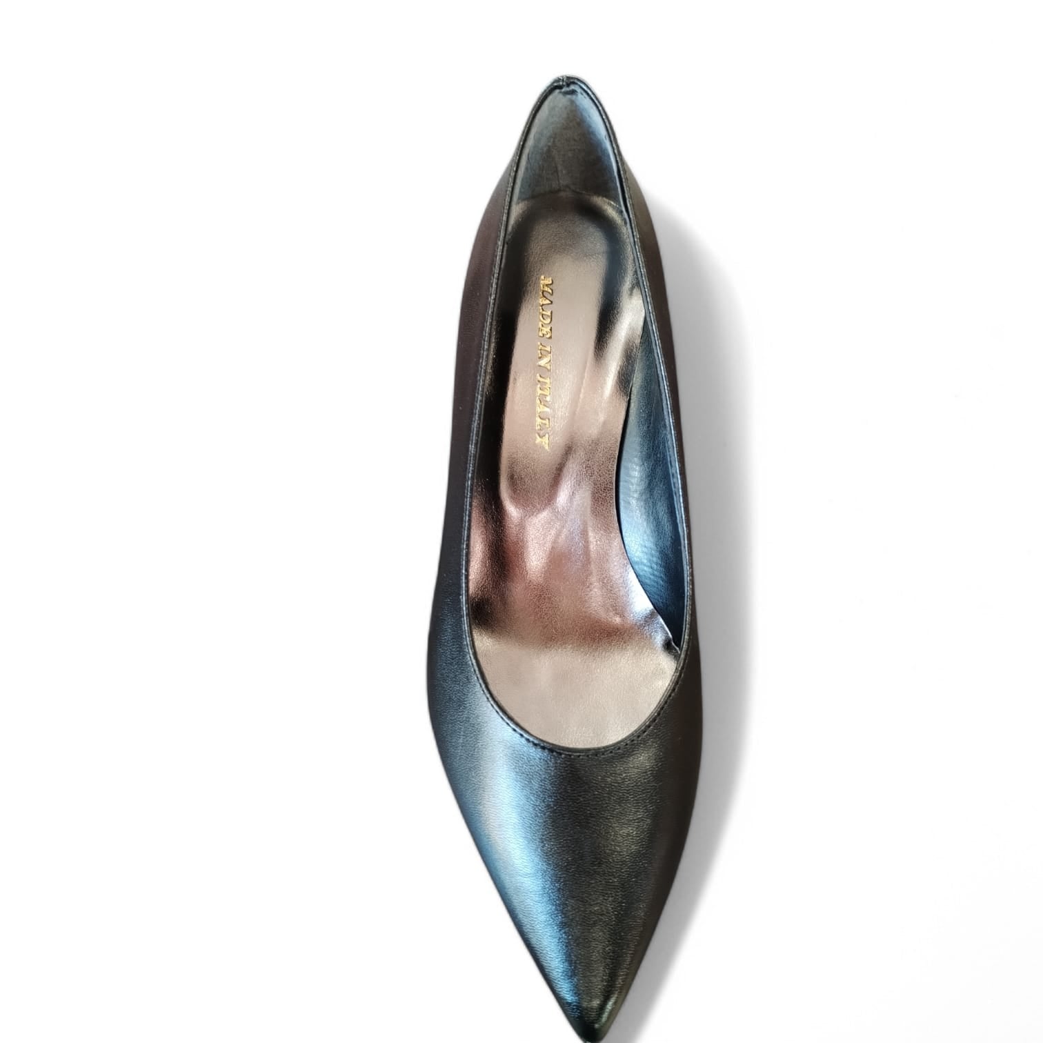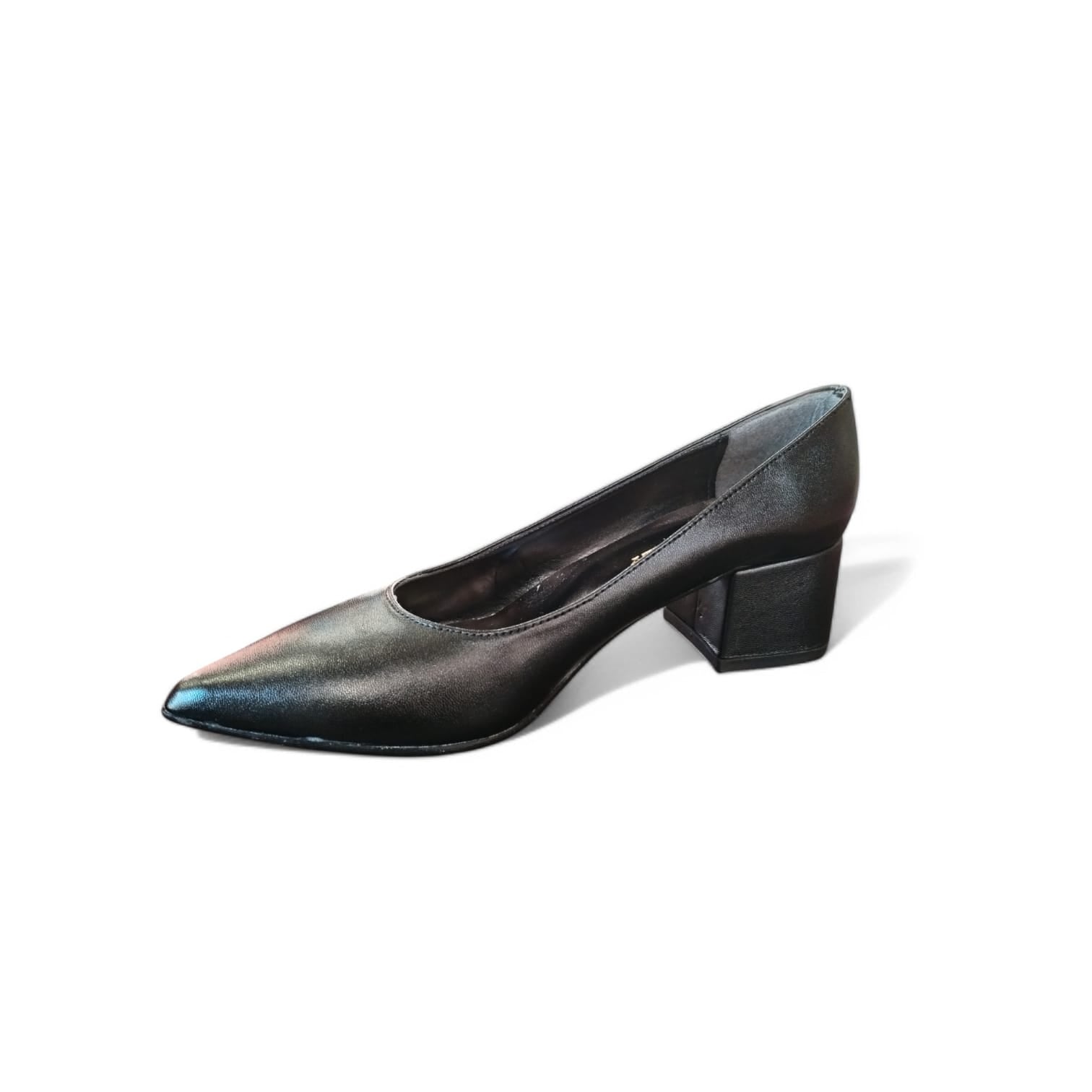 Calzature interamente italiane in ecopelle nera, con un tacco largo che rende la tua scarpa comoda e accessibile per ogni occasione.