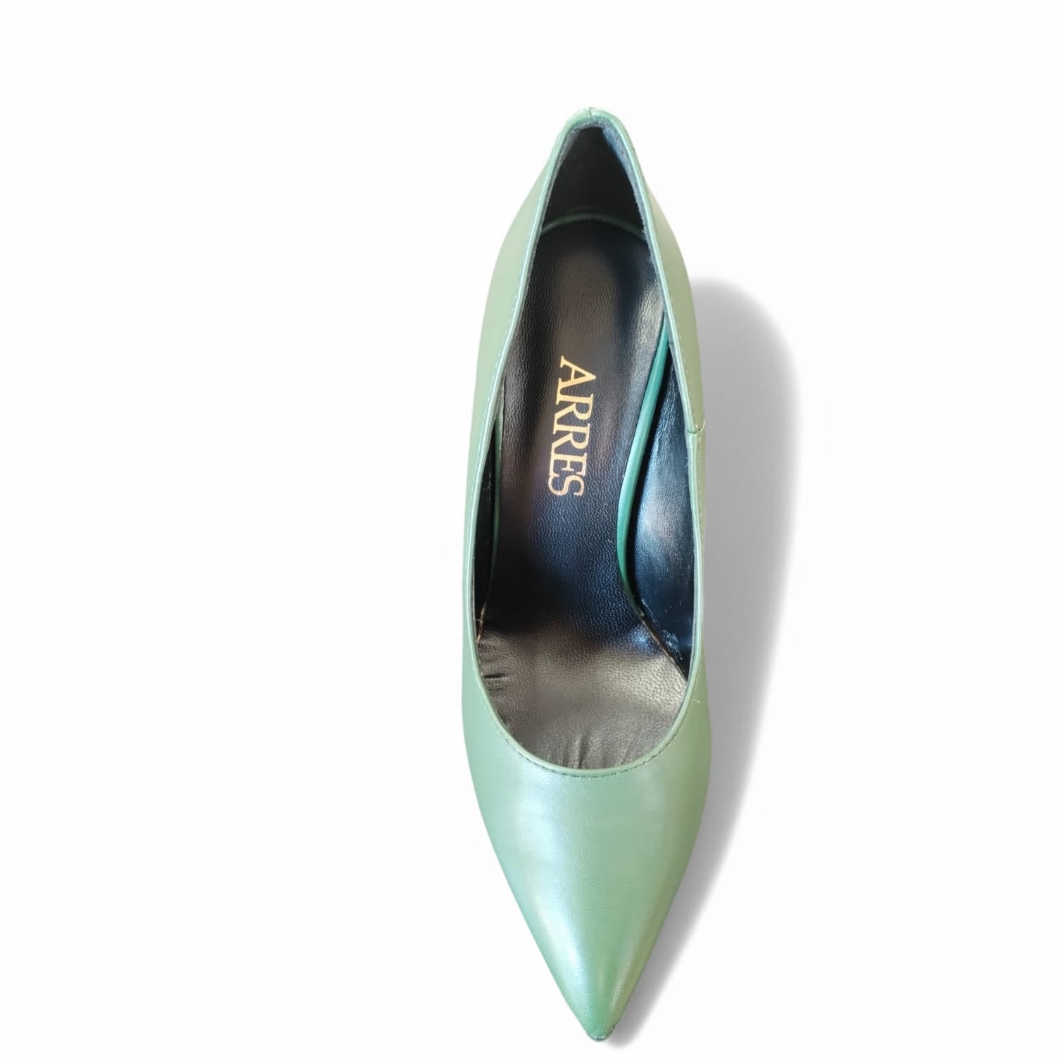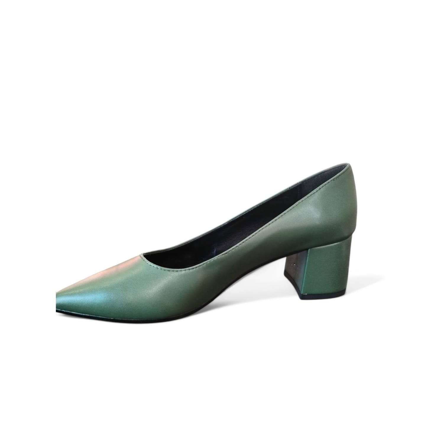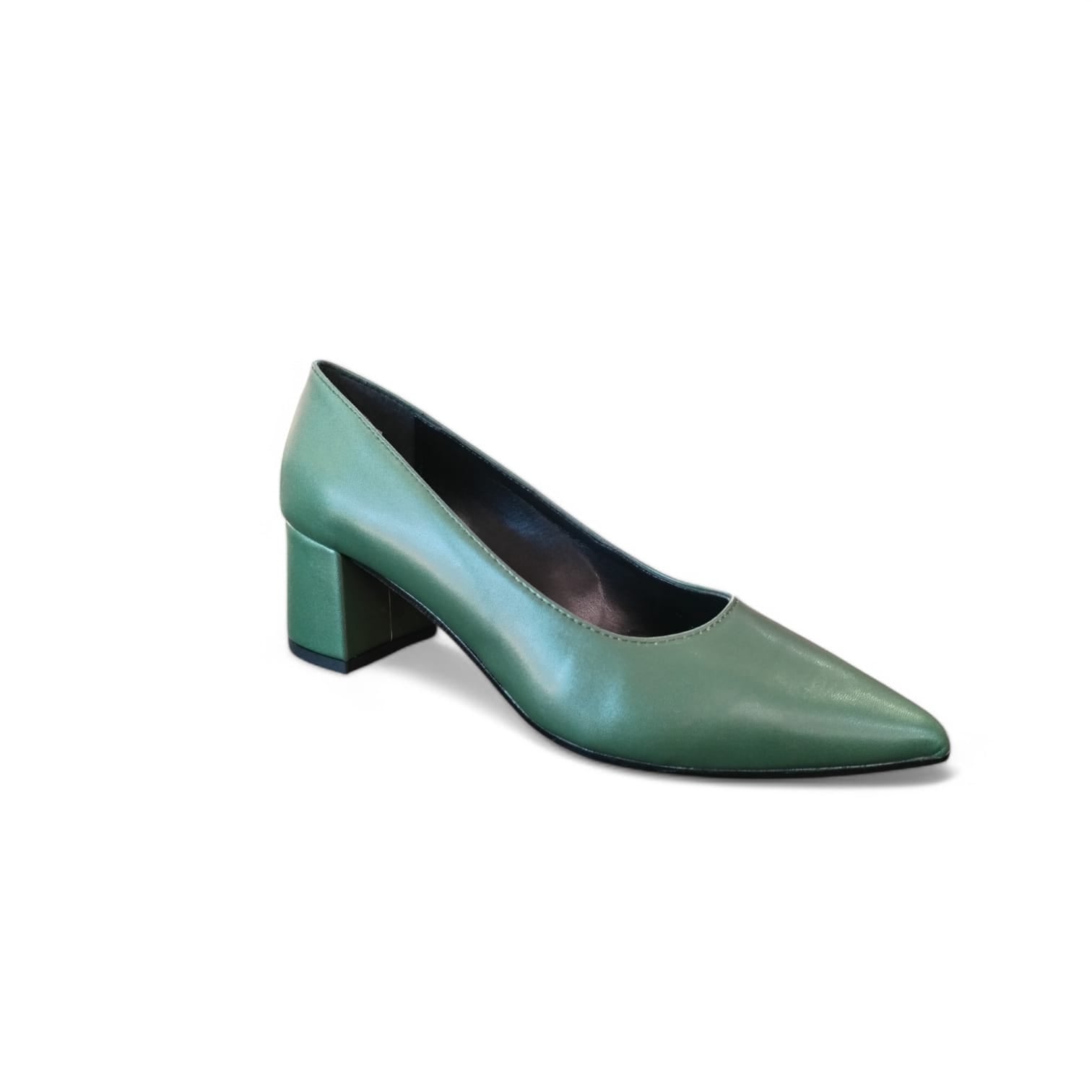 Calzature interamente italiane di colore verde con sottopiede in vera pelle e ecopelle esternamente per garantire comfort e durata.