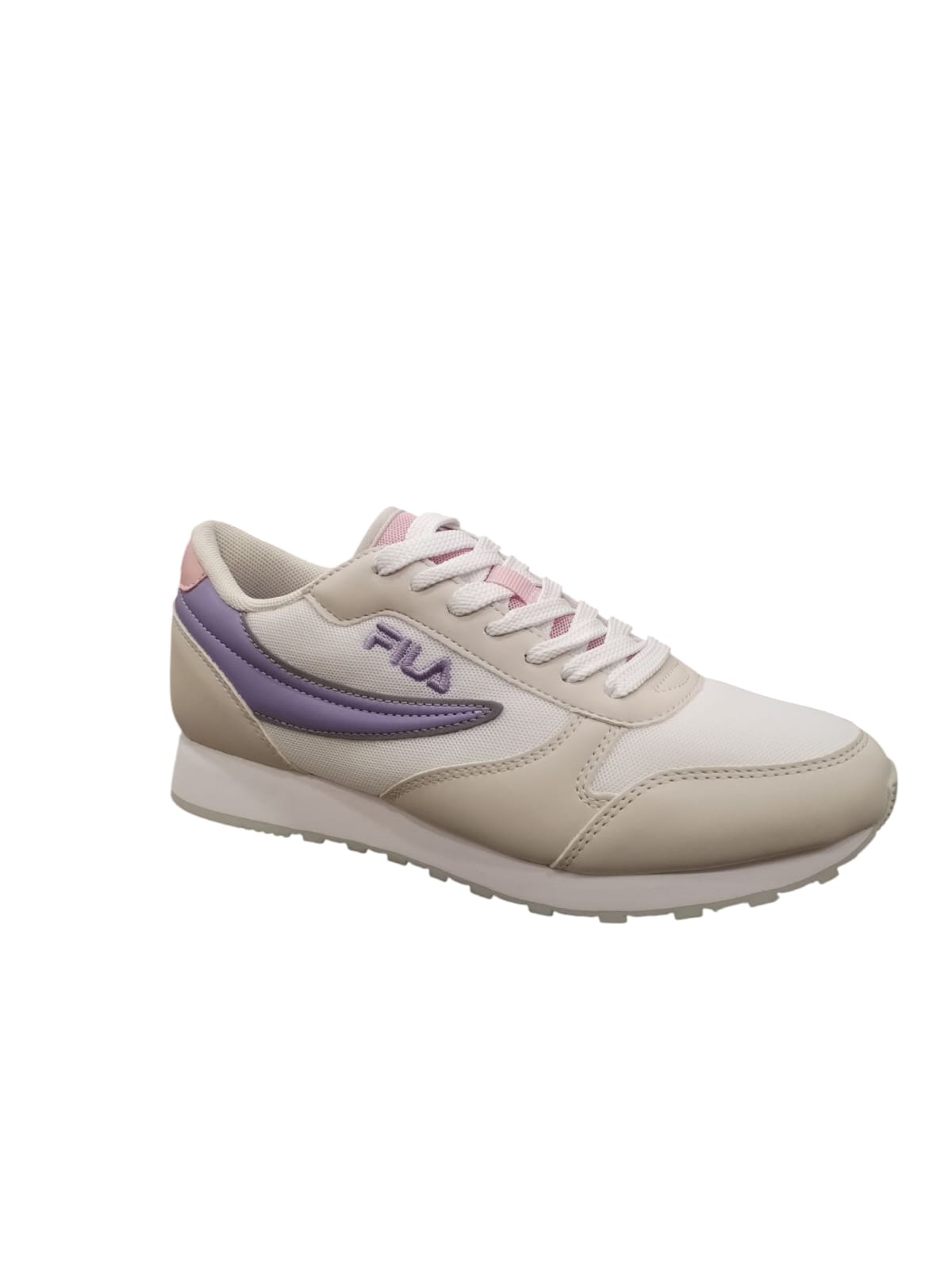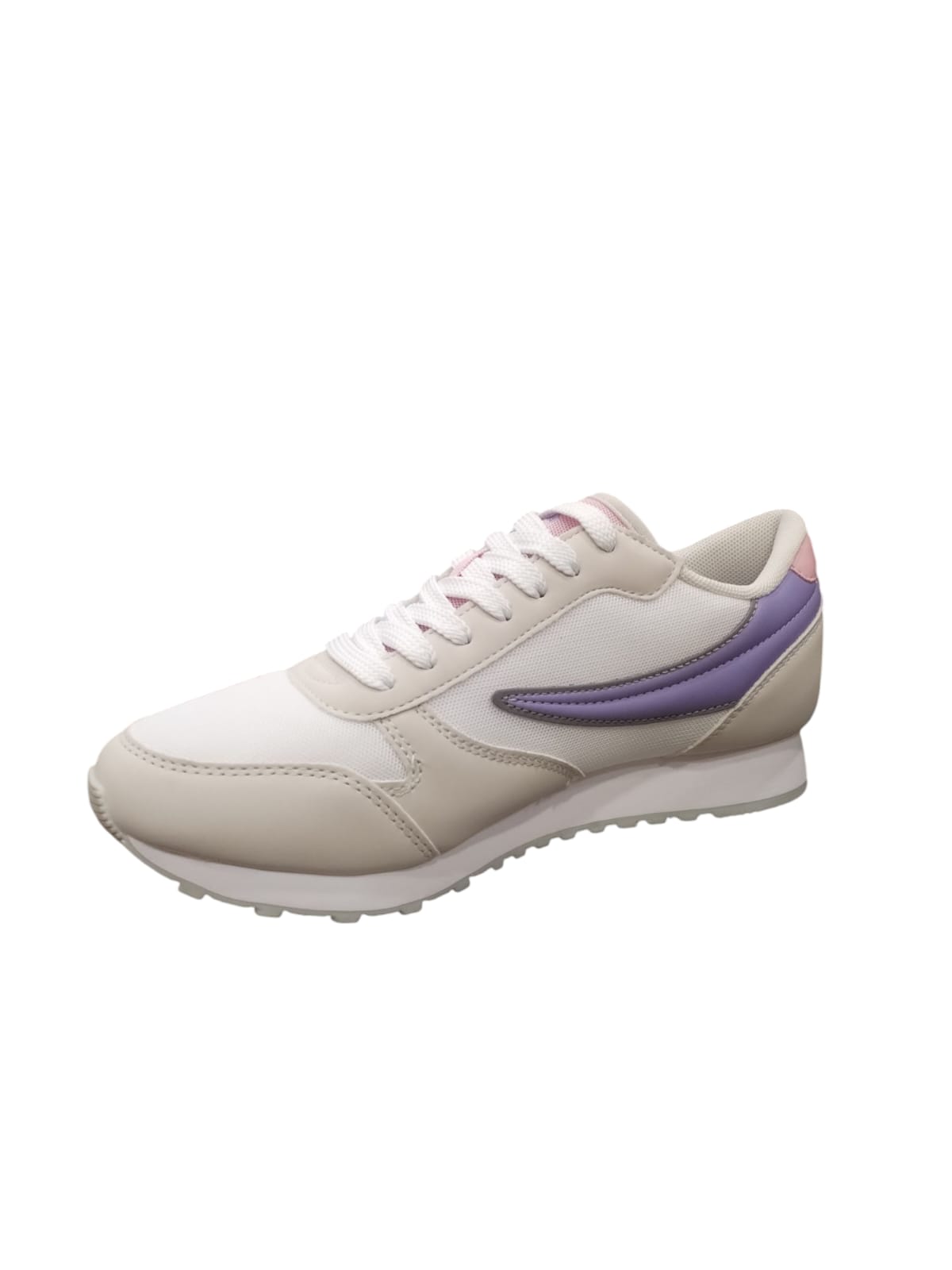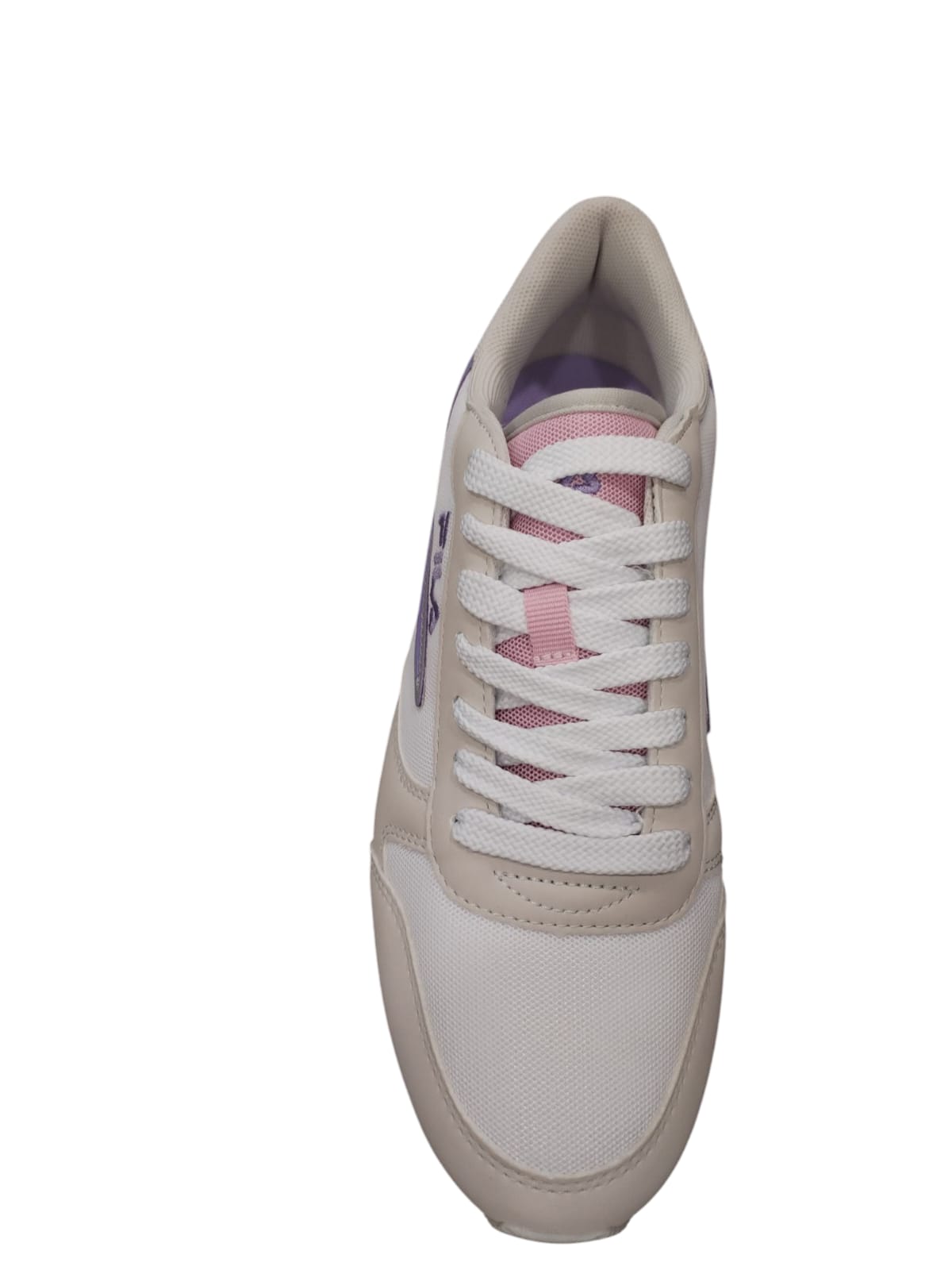 Diadora collezione 2025 donna, in beige con logo viola, super leggera e rialzata internamente.