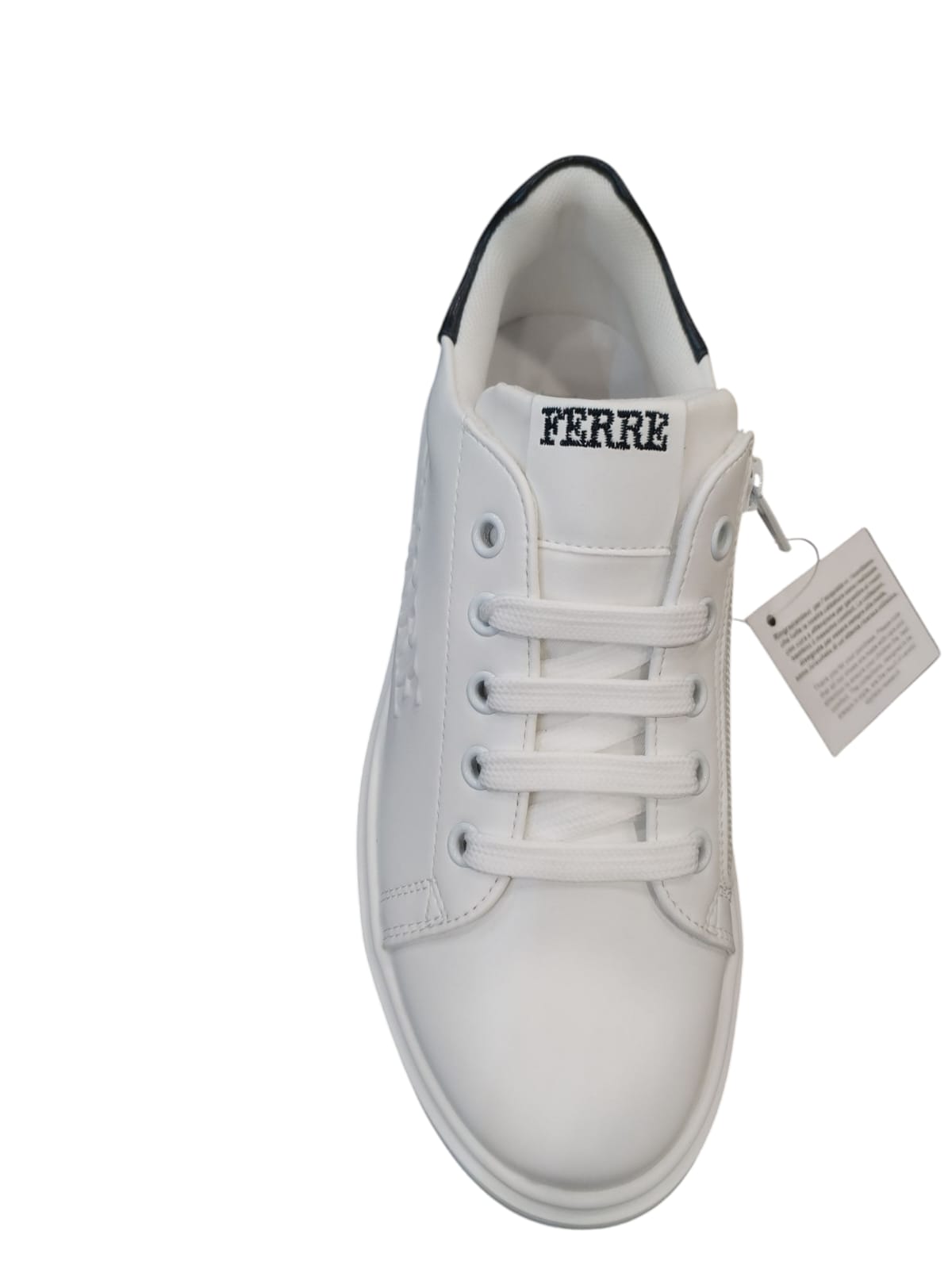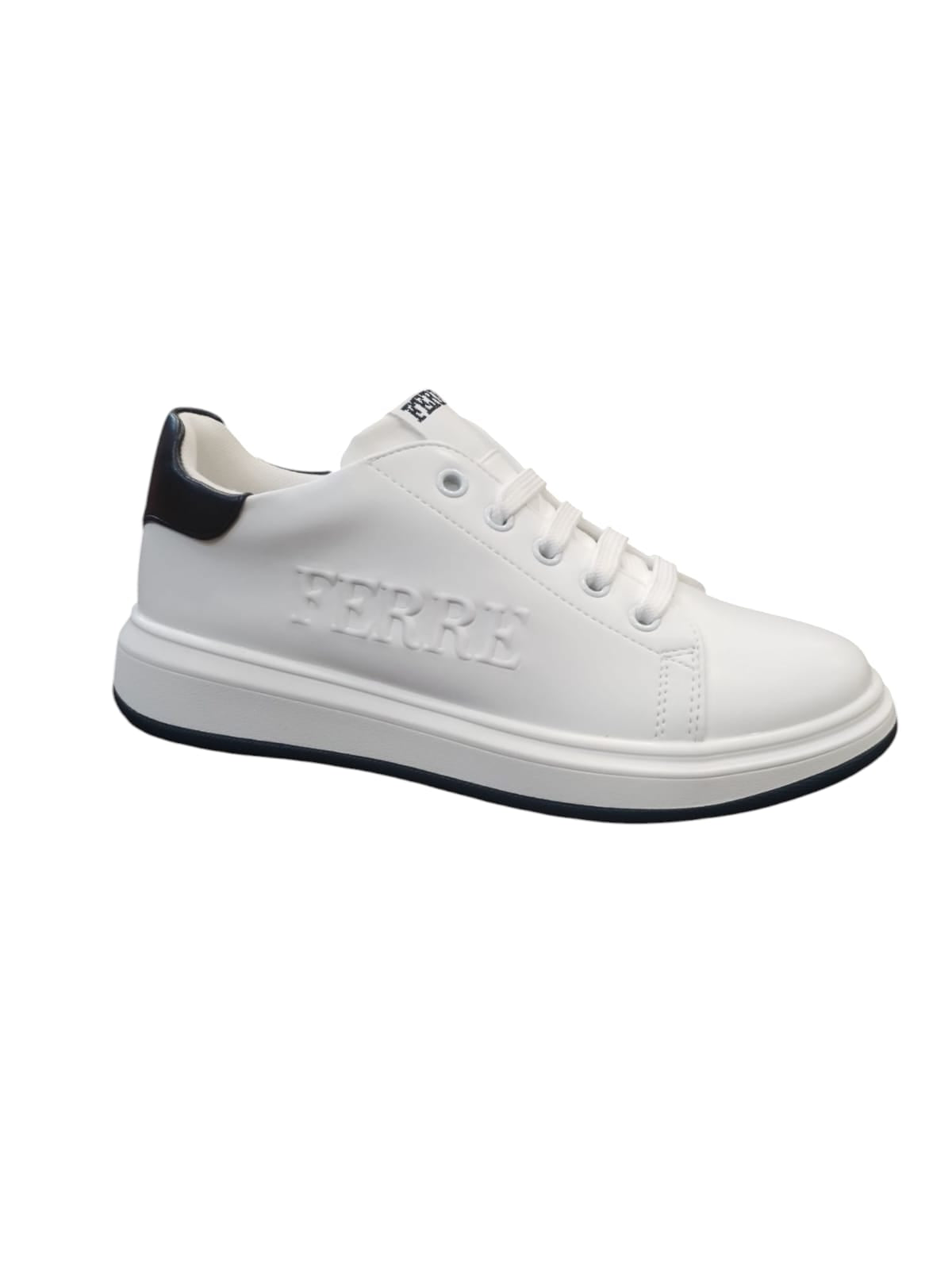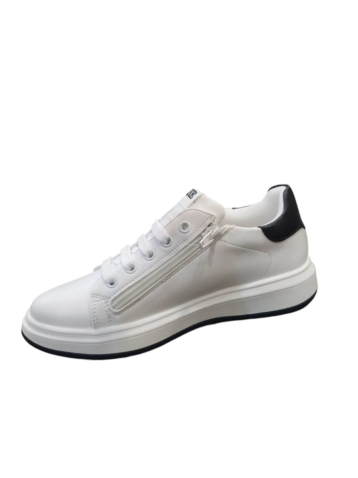 Sneaker in ecopelle bianca con retro nero e sottopiede in vera pelle.