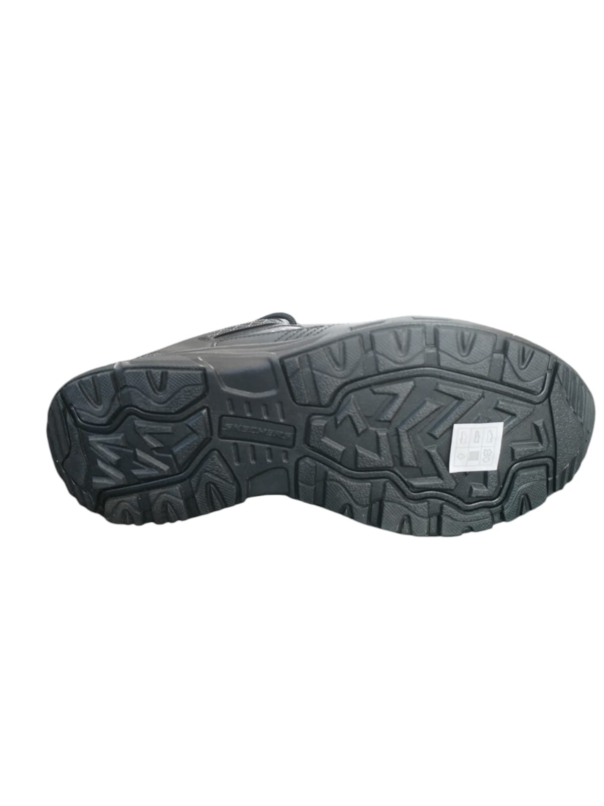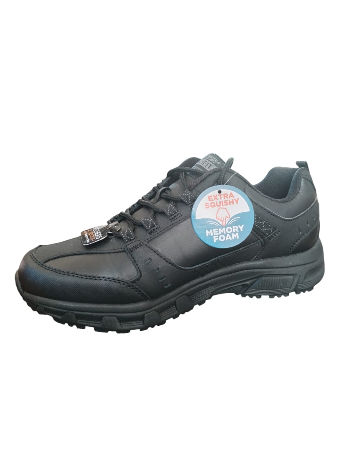 Skechers in ecopelle completamente nera, con soletta memory foam.